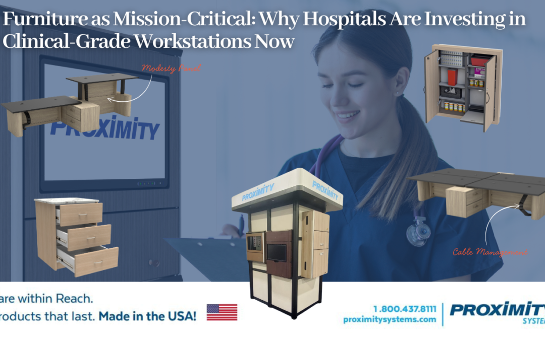 🔧 Ready to rethink your clinical furniture strategy? Contact Proximity Systems today to explore how our antimicrobial, ergonomic, and secure workstations and enclosures can elevate your facility’s design and workflow.
