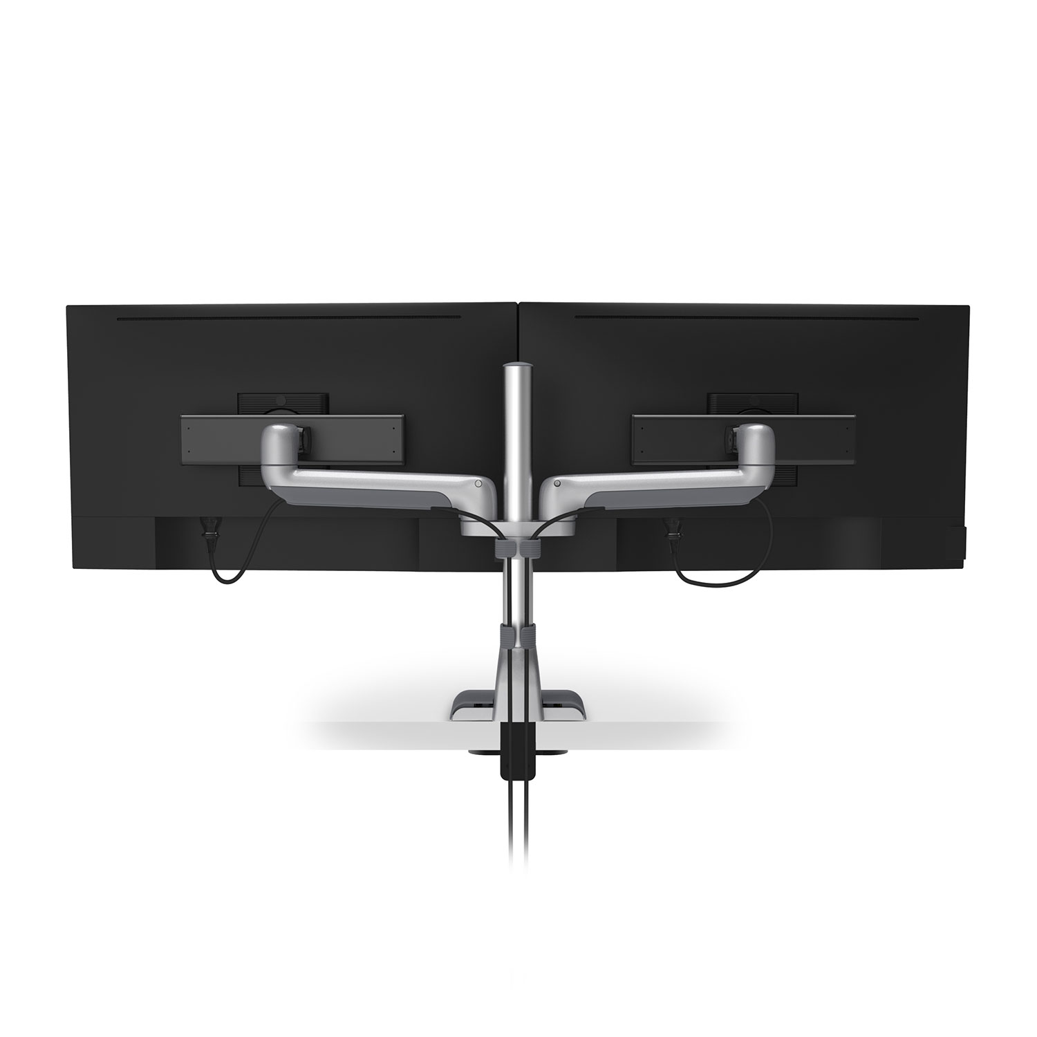 support two monitors with a stable pole-mounted configuration, it combines streamlined cable management, ergonomic performance, and