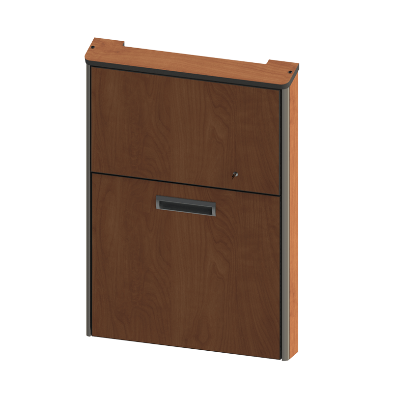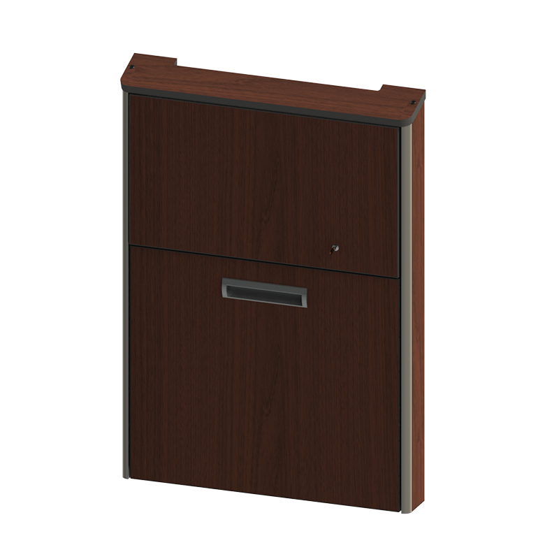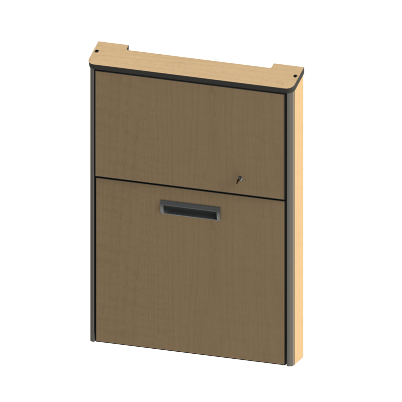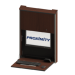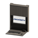 - Unique keyboard and mouse storage allows the keyboard and mouse to dock automatically when the worksurface is closed.
