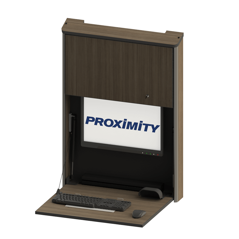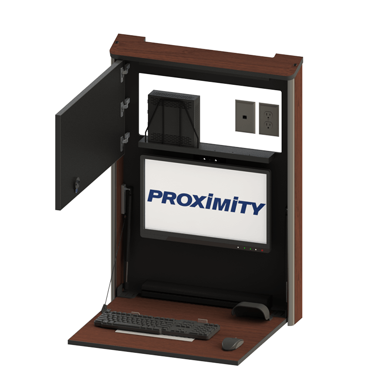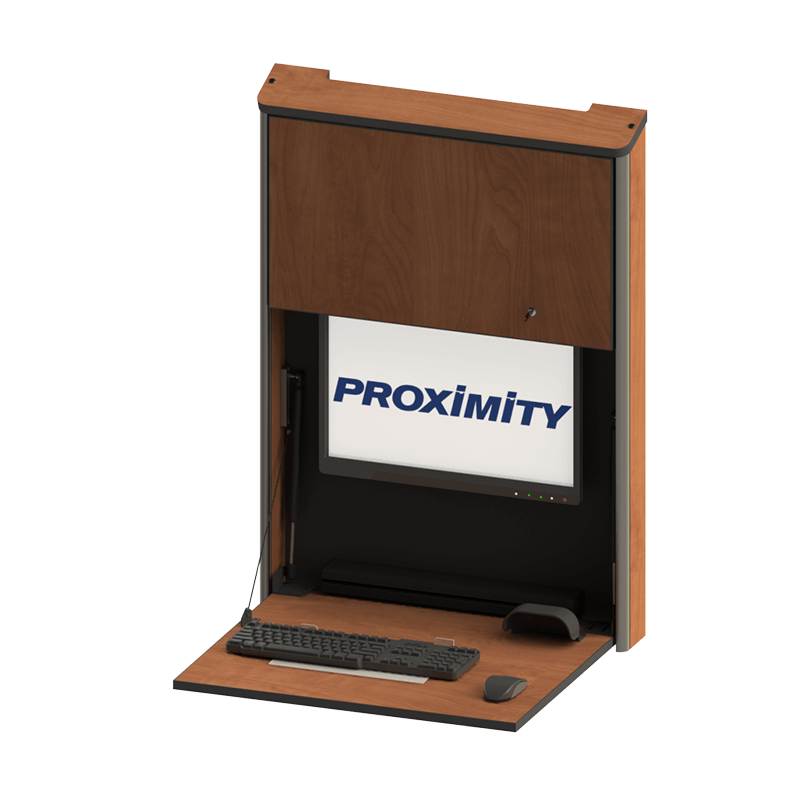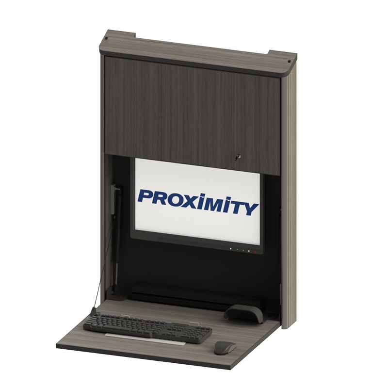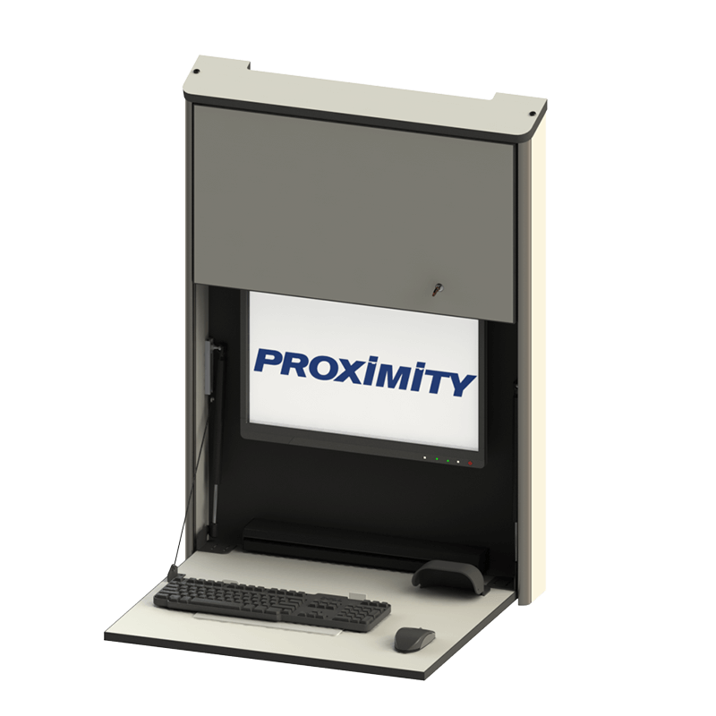 Embrace SLIM EXT-6051 Wall Mounted Computer Workstation perfect for space constrained or egress areas. This workstation is just 4 inches deep with secure CPU storage, cable management, keyboard and mouse storage.