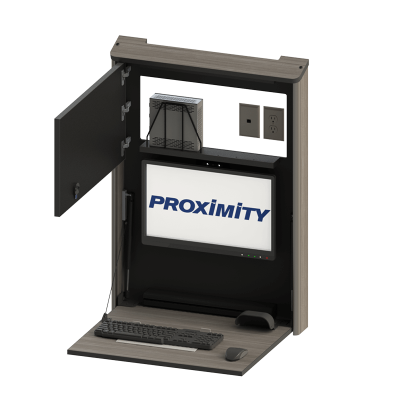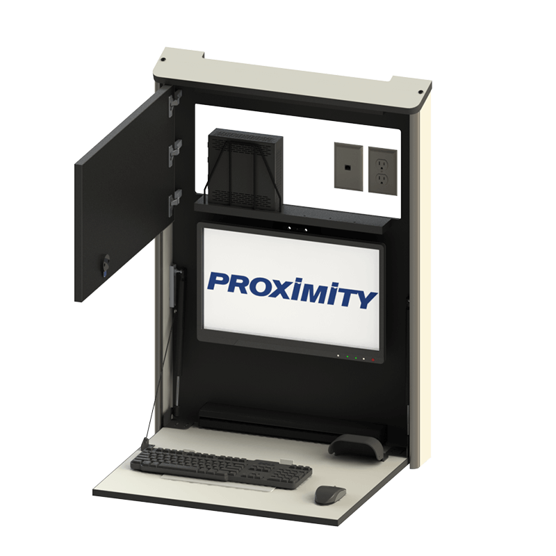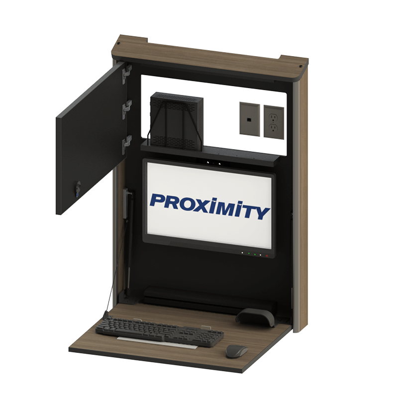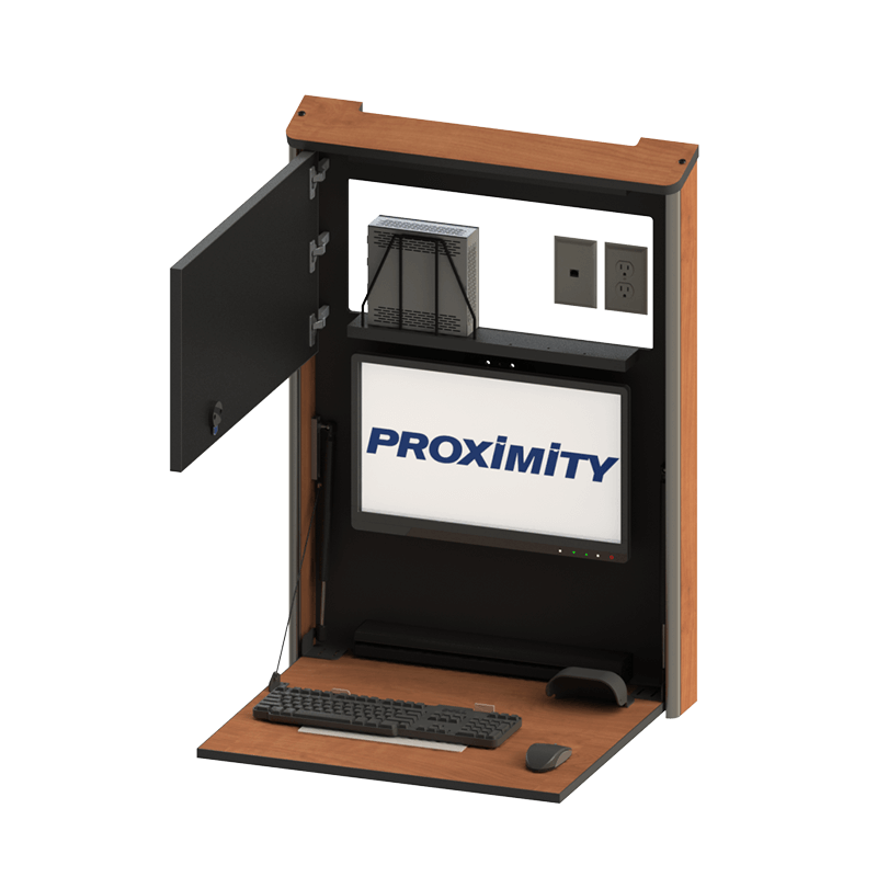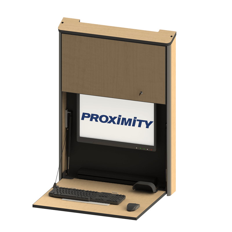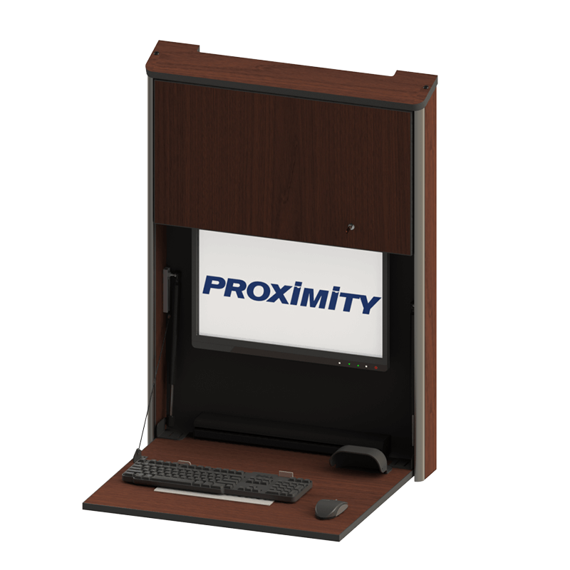 Embrace SLIM EXT-6051 Wall Mounted Computer Workstation perfect for space constrained or egress areas. This workstation is just 4 inches deep with secure CPU storage, cable management, keyboard and mouse storage.