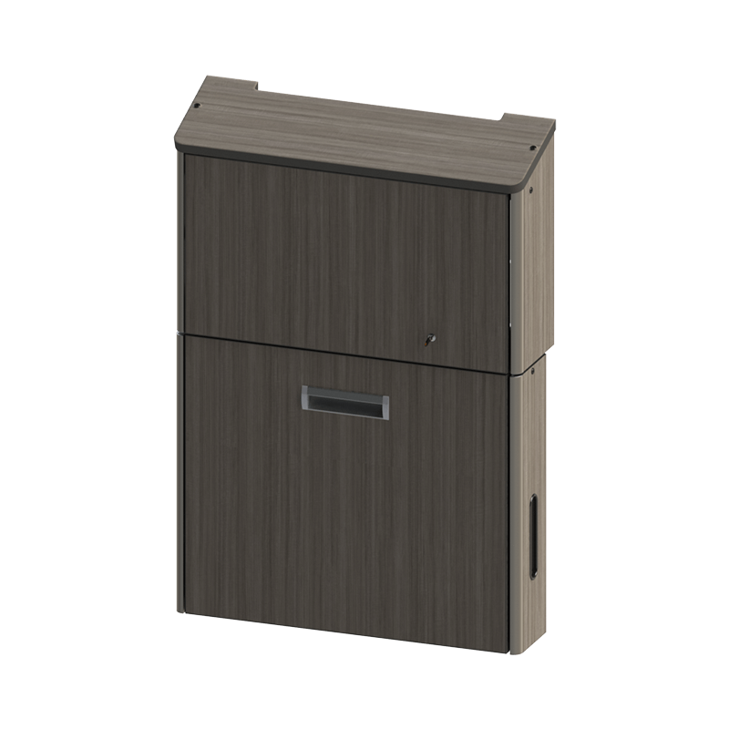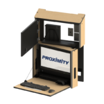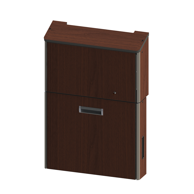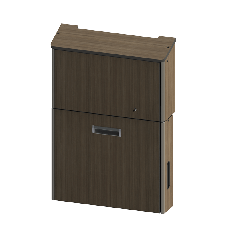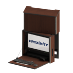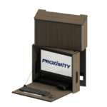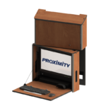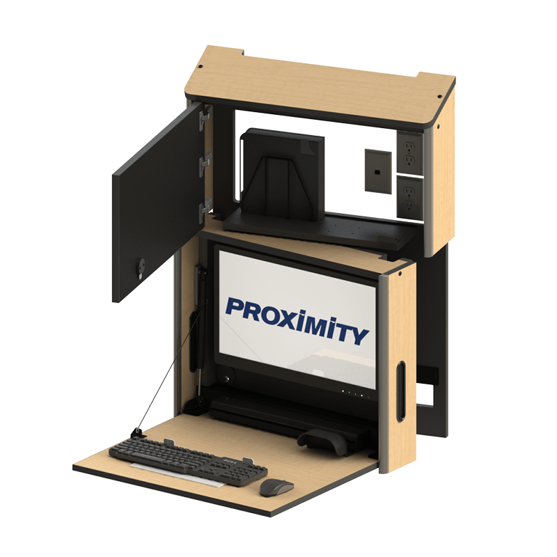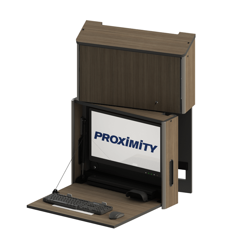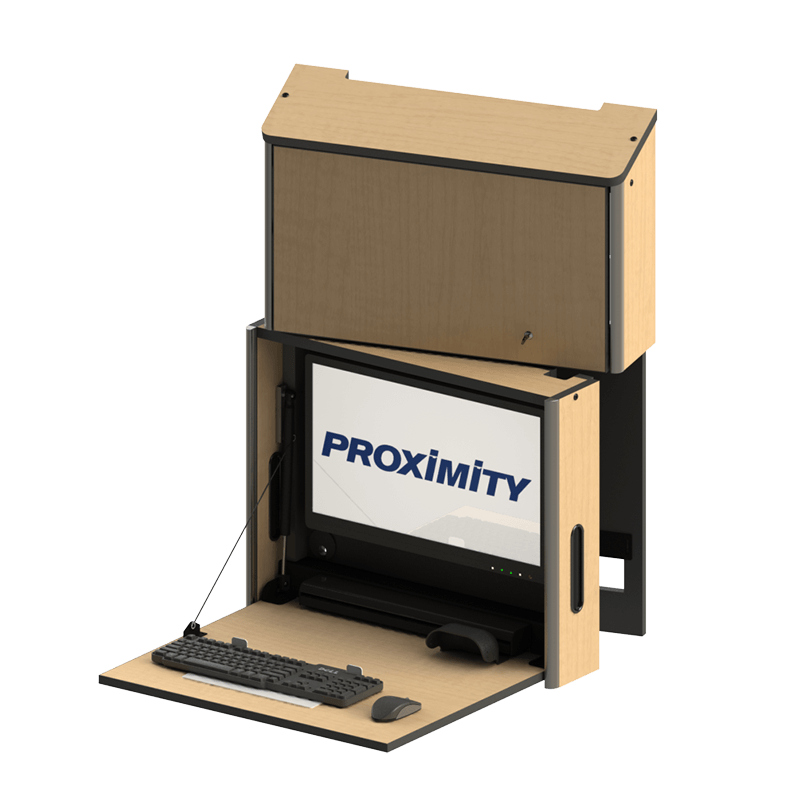 - Unique keyboard and mouse storage allows the keyboard and mouse to dock automatically when the worksurface is closed.