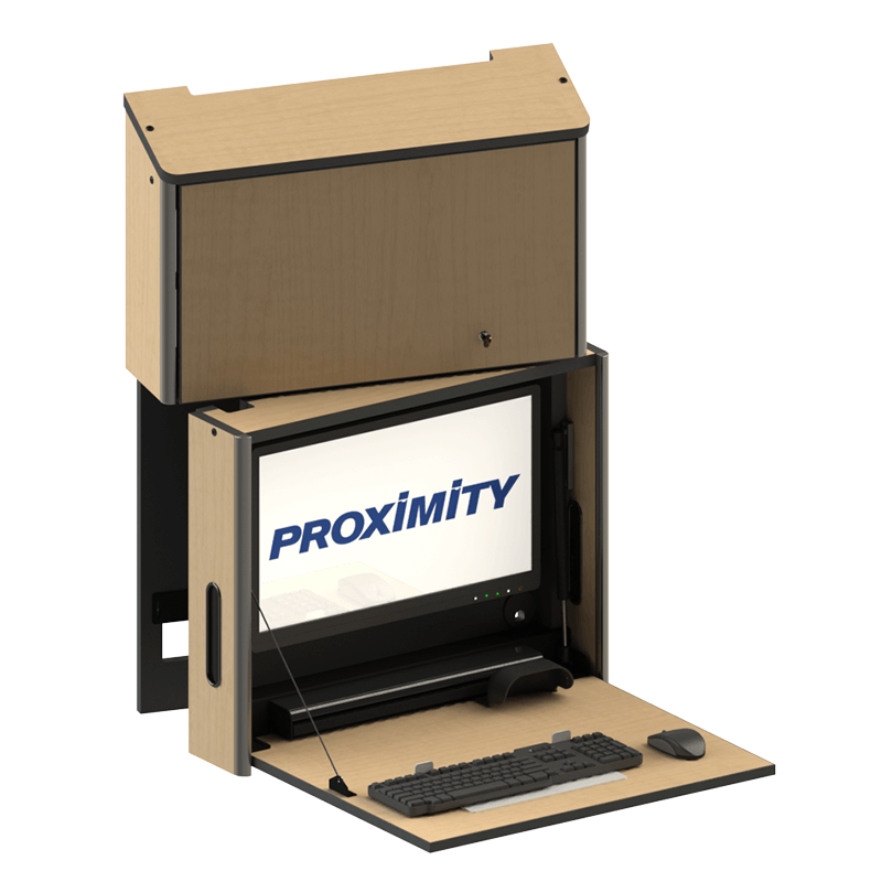 The Embrace™ INT Right Swivel Wall Mounted Computer Workstation seamlessly blends modern aesthetics with practical functionality. Designed to meet the demands of various settings, this unit offers the same advantages as our Embrace™ INT model, but with a 90-degree worksurface RIGHT swivel.